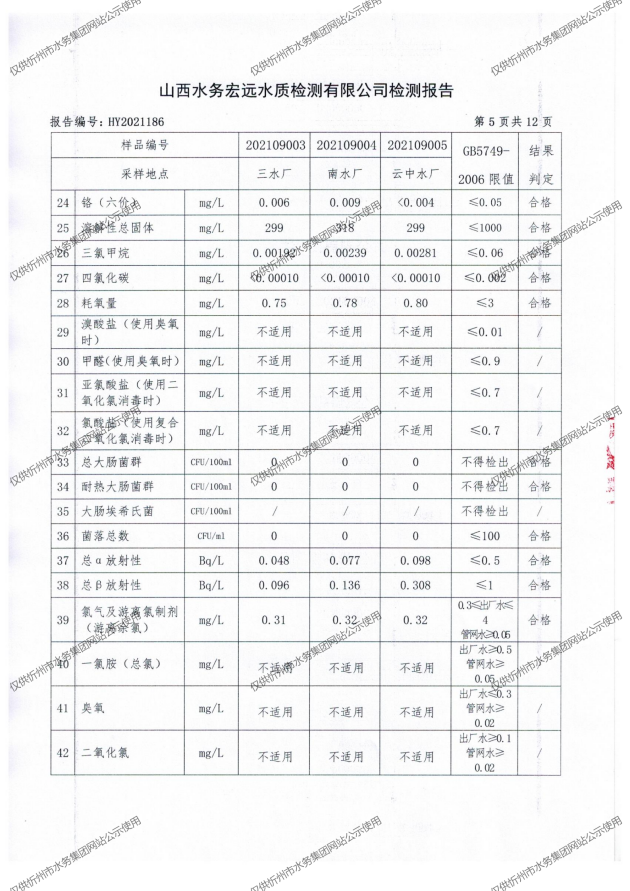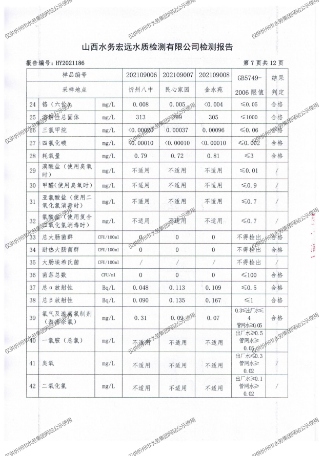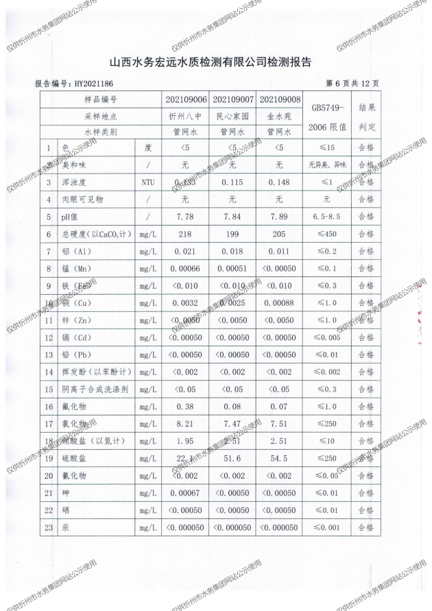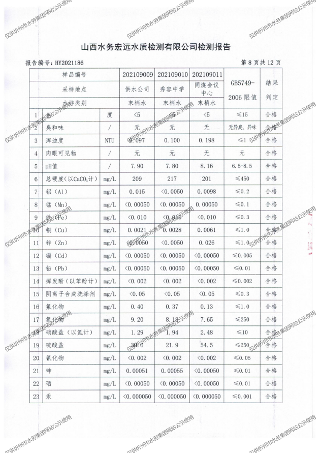 忻州城區(qū)公共供水水源水、出廠水、管網(wǎng)水、管網(wǎng)末梢水2021年9月份水質(zhì)信息公示