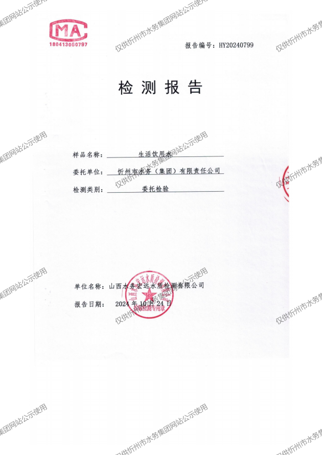 忻州城區公共供水水源水、出廠水、管網水、管網末梢水2024年10月份水質信息公示