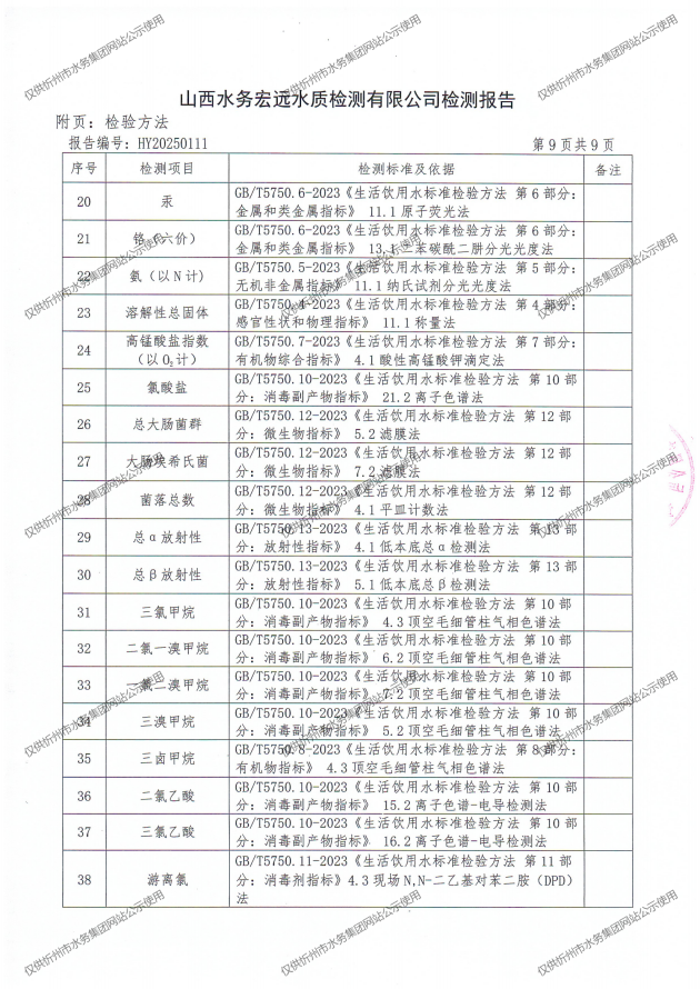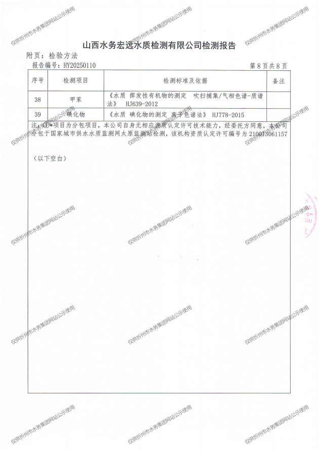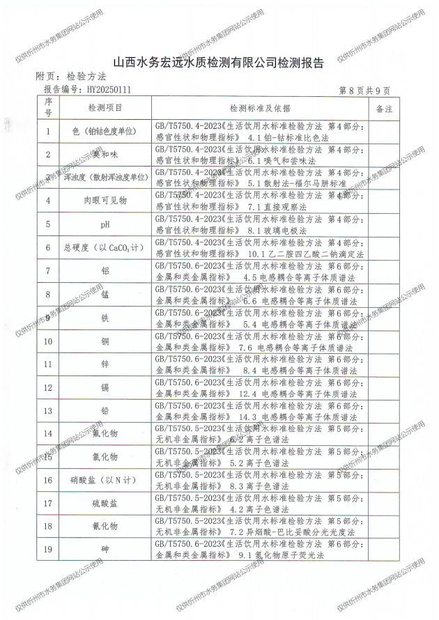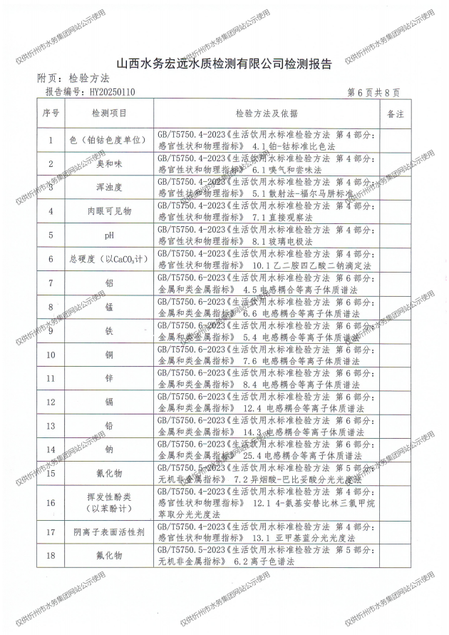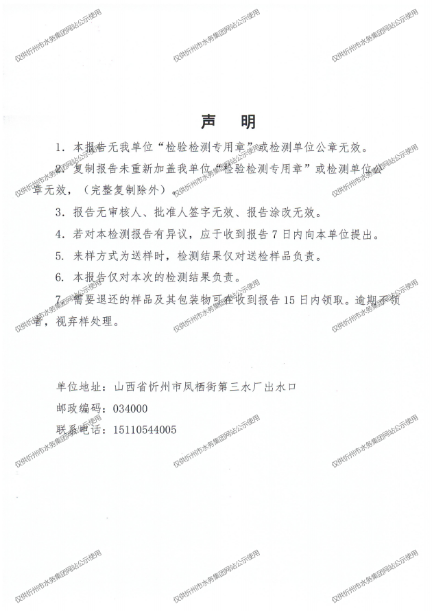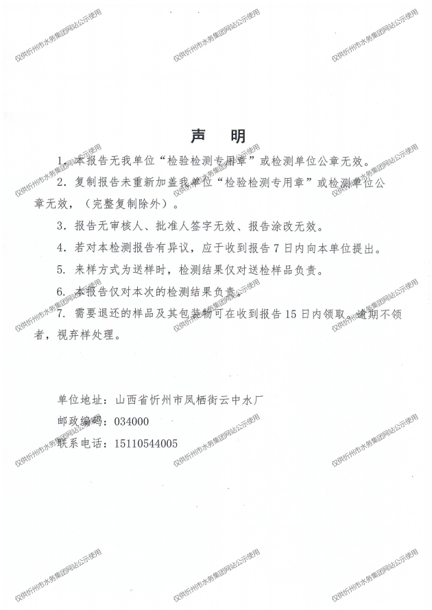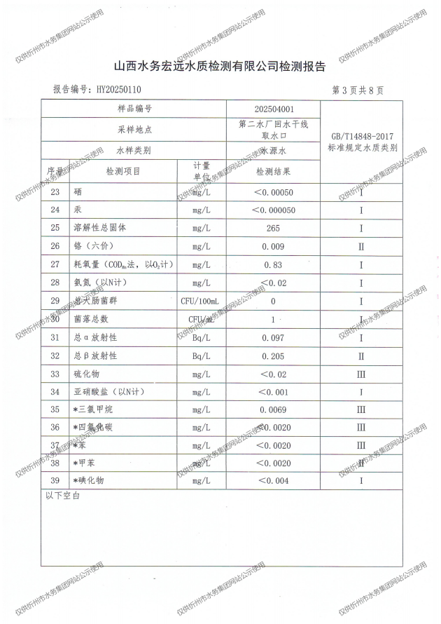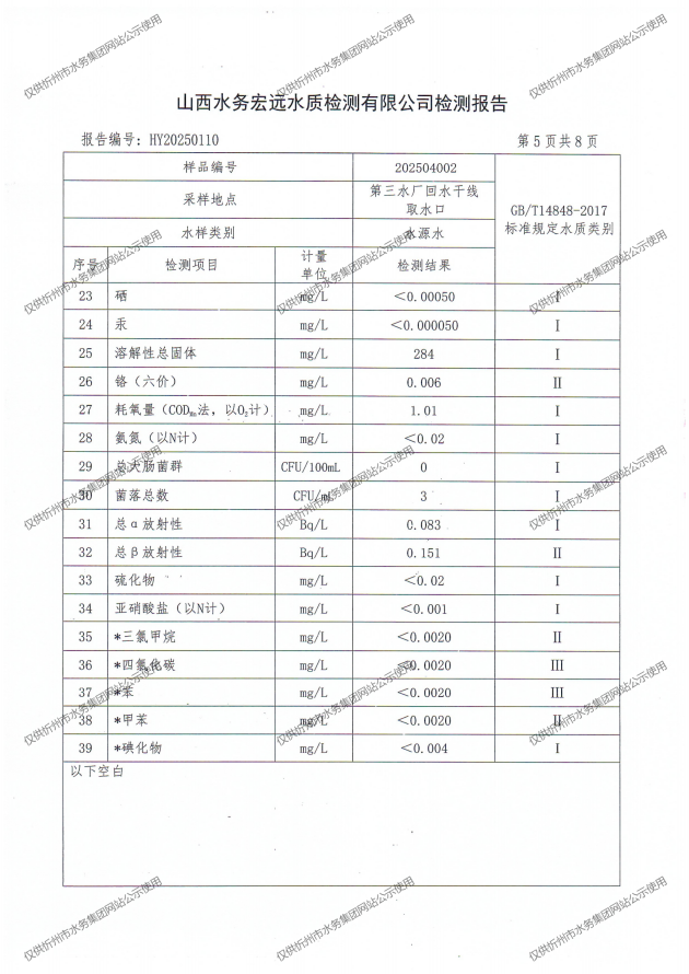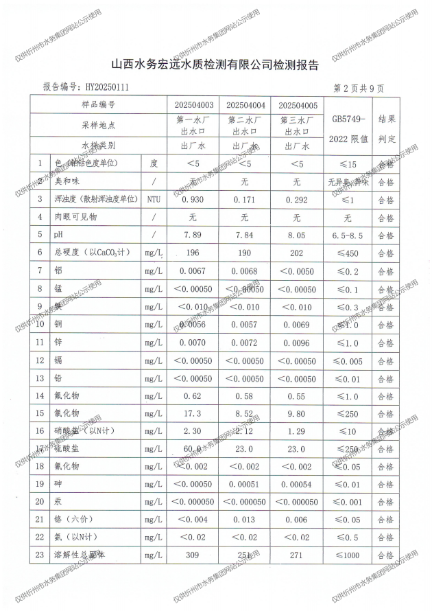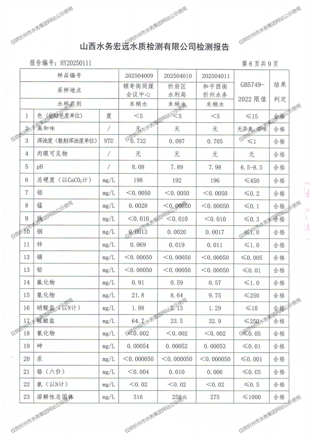 忻州城區公共供水水源水、出廠水、管網水、管網末梢水2025年4月份水質信息公示